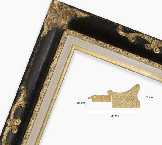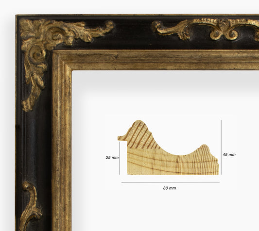 COR.620.601 cadre en bois à la feuille d'or gorge noire