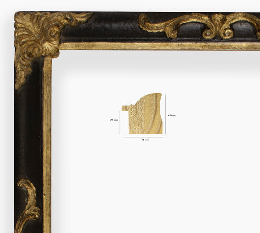 COR.227.601 cadre en bois à la feuille d'or gorge noire