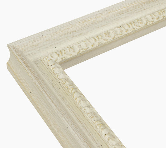 CV.343.915 cadre en bois à fond ocre blanc avec verre mesure de profil 60x30 mm