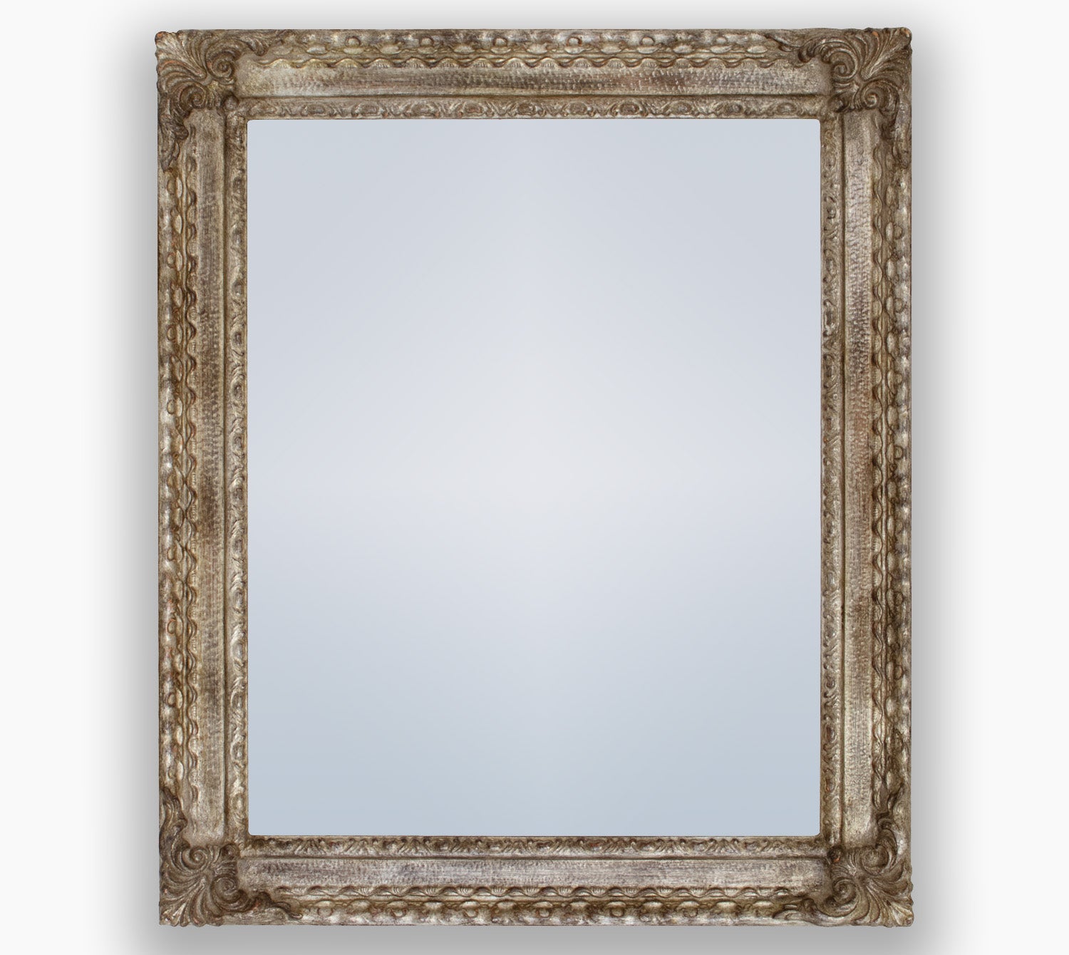 Miroir avec cadre argent et finition patinée antique en bois, idéal pour sublimer n'importe quel intérieur et pour insérer un objet de valeur dans un meuble.
