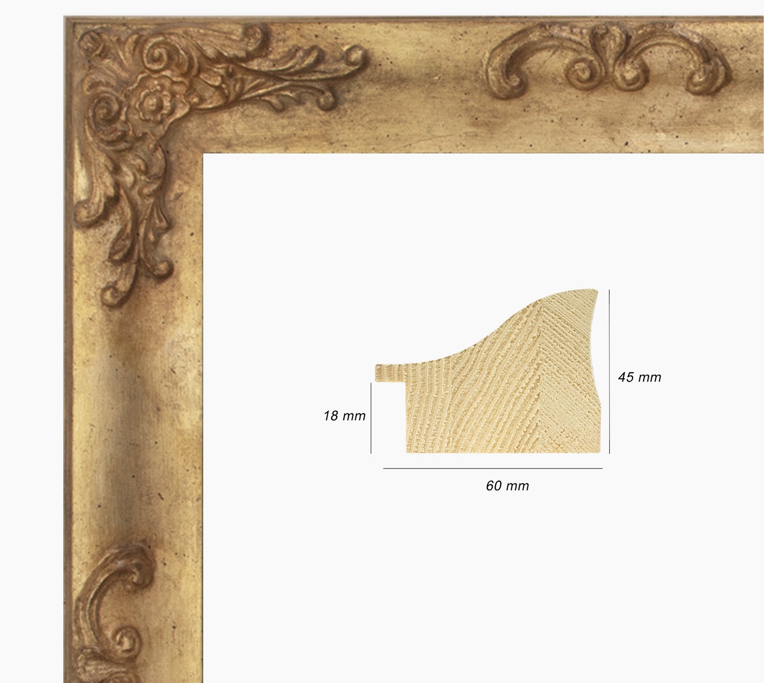 Miroir avec cadre doré et finition patinée cadre en bois, idéal pour sublimer n'importe quel intérieur et pour insérer un objet de valeur dans un meuble.