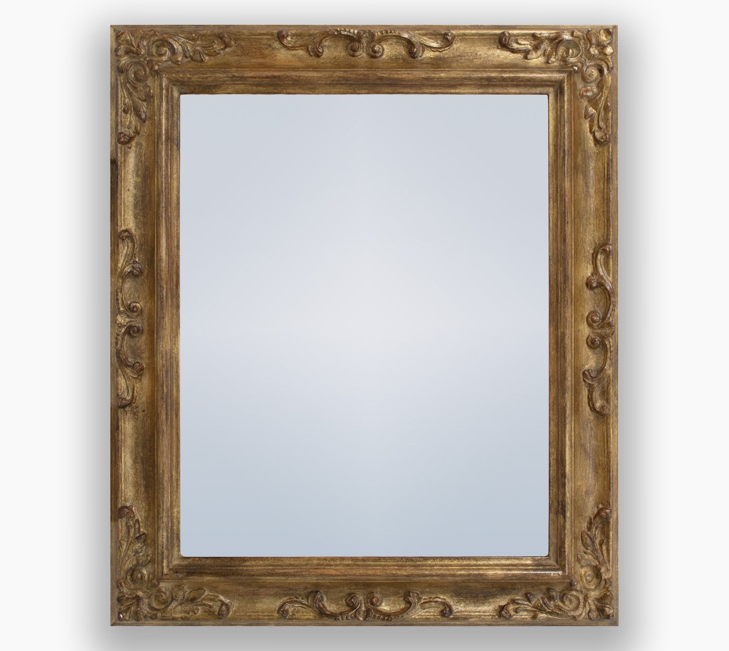 Miroir avec cadre doré et finition patinée antique en bois, idéal pour sublimer n'importe quel intérieur et pour insérer un objet de valeur dans un meuble.