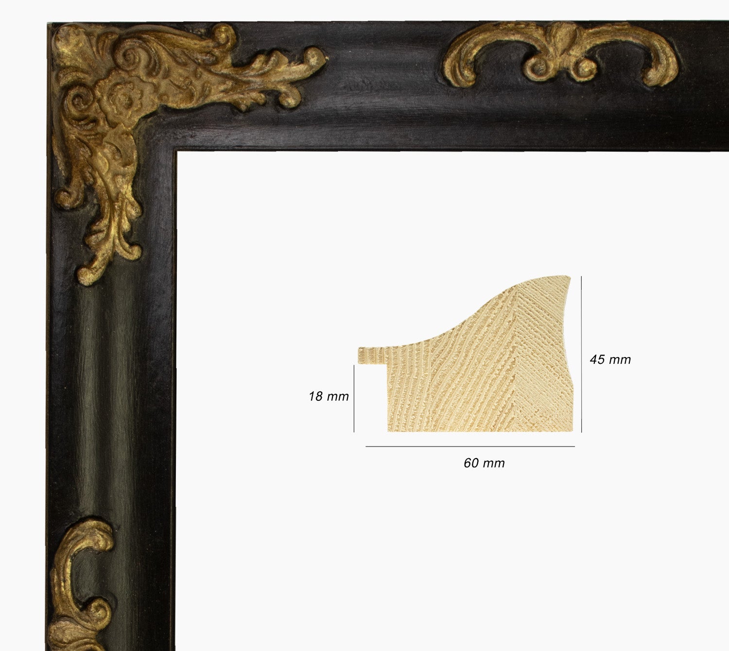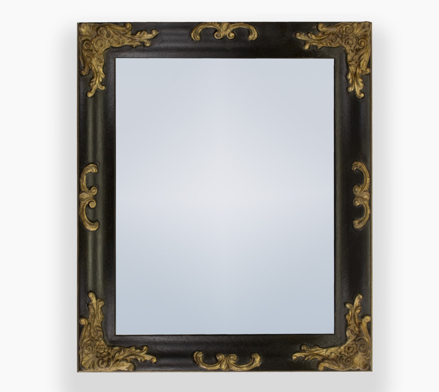 Miroir avec cadre noir et or et finition patinée, cadre en bois, idéal pour sublimer n'importe quel intérieur et pour insérer un objet de valeur dans un meuble.
