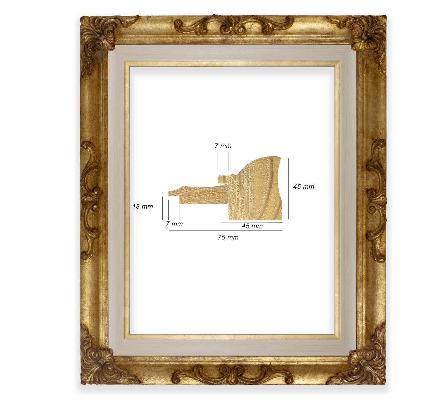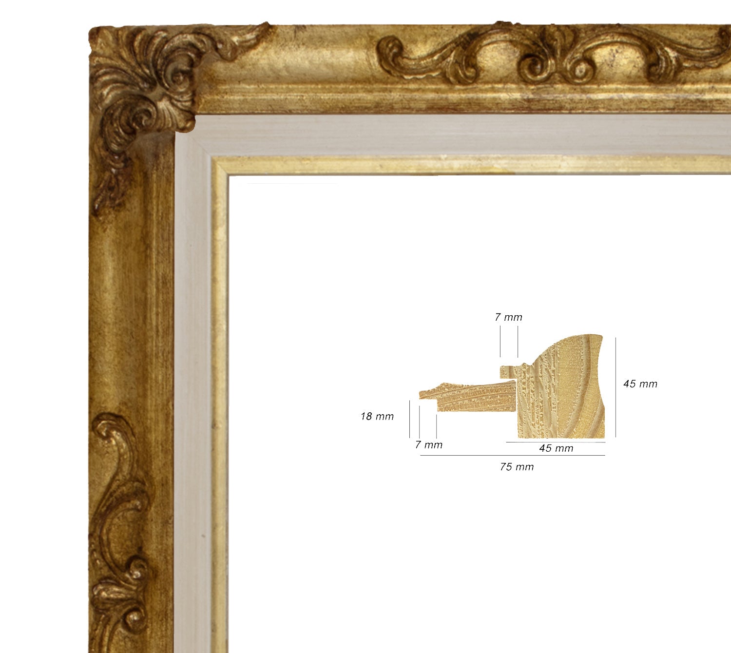 Baroque gold leaf frame with a Marie-Louise motif. Finely handcrafted, this frame is perfect for framing your work to showcase. This frame is ideal for framing antique and classic paintings, and can also be used to create beautiful mirrors.