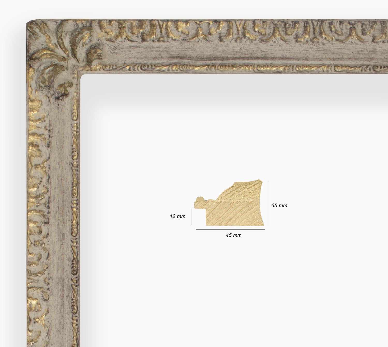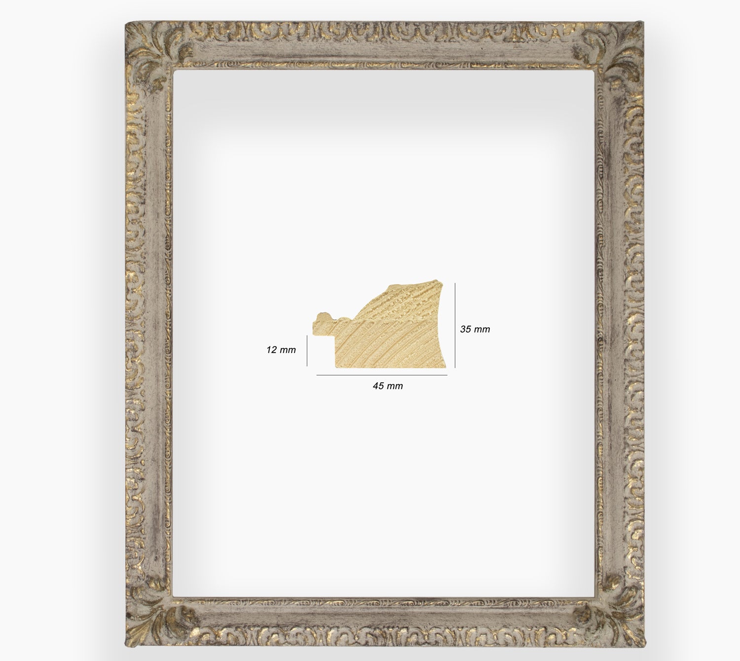 Custom frame in antique dove gray leaf wood with gold, finely hand-crafted frame suitable for the framing work you wish to highlight. Frame suitable for framing old and classic paintings, beautiful mirrors can also be created.