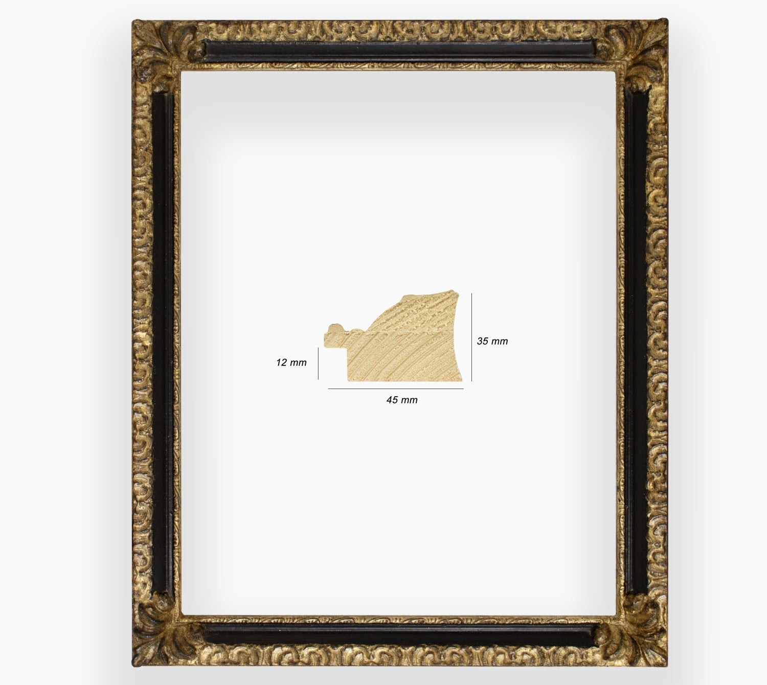 Baroque gold leaf frame with black waxed groove, finely hand-worked frame suitable for the framing work that you wish to highlight. Frame suitable for framing old and classic paintings, beautiful mirrors can also be created.
