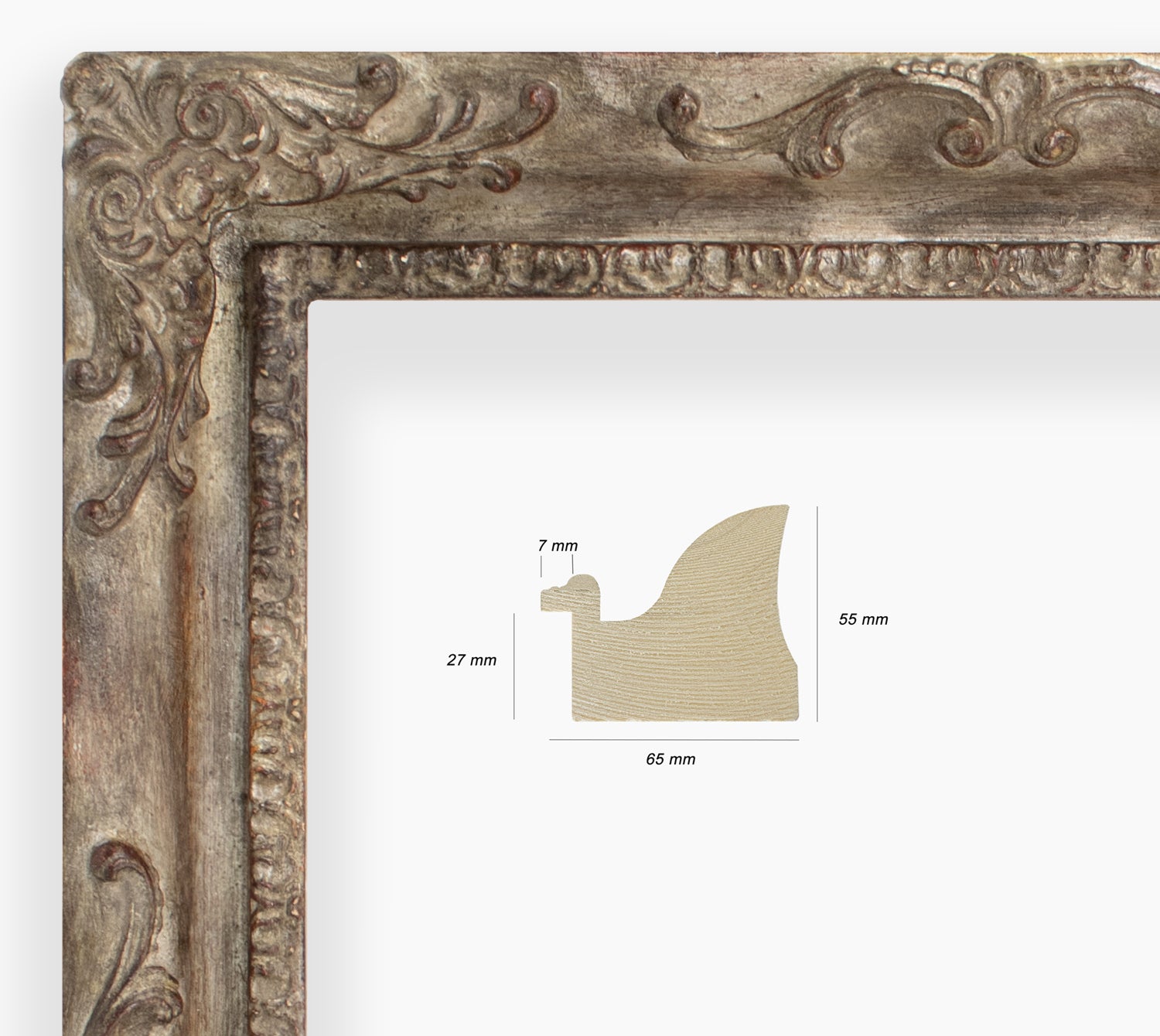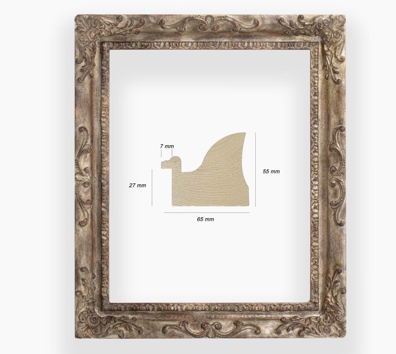 Wooden frame with antique silver leaf, finely hand-worked frame suitable for the framing work that you wish to highlight.
